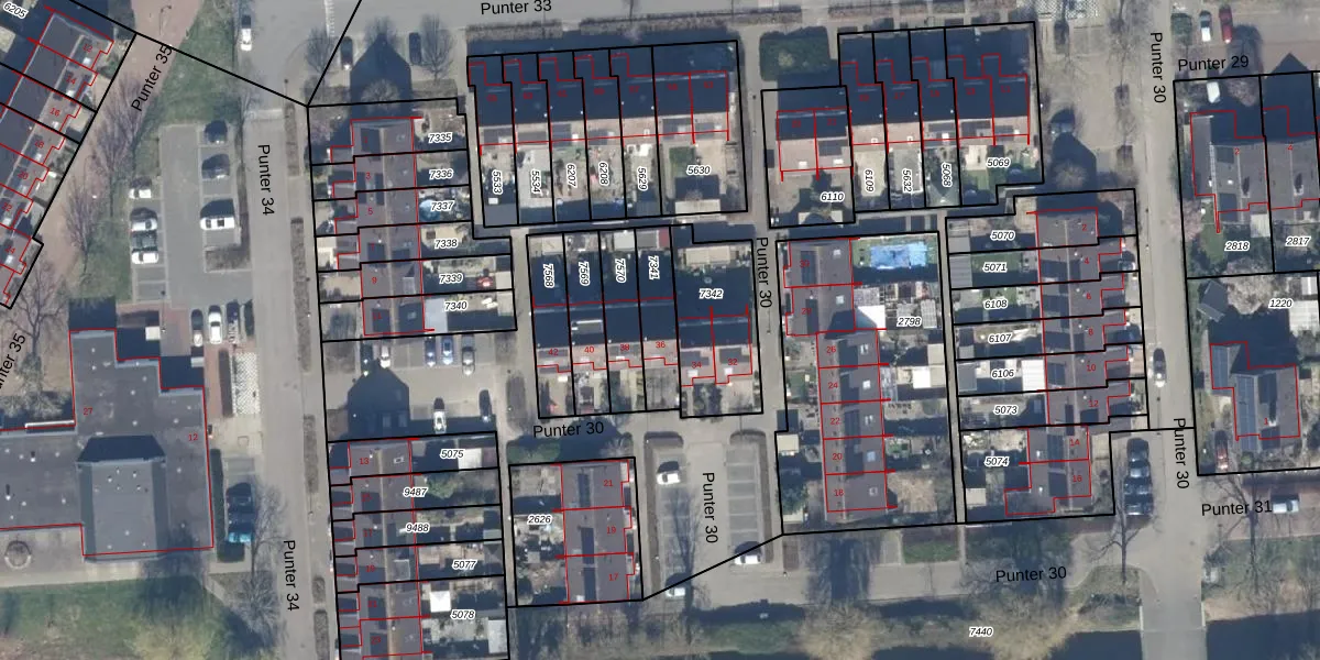 Gebruik de zoekbalk of klik op een perceel voor informatie over de adressen binnen dit perceel.