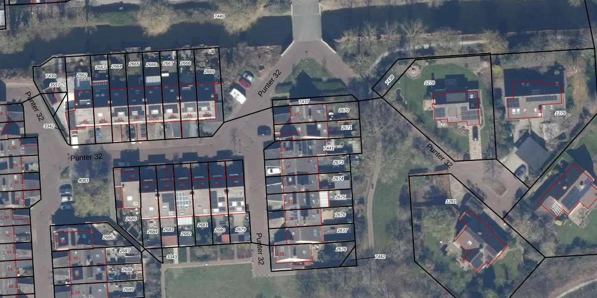 Het perceel waarop Punter 32 17 staat heeft een oppervlakte van 184 m². Dit is een middelgroot perceel. De perceeloppervlakte wordt geregistreerd door het Kadaster. Gedetailleerde informatie over de maten van dit perceel kunt u vinden in het rapport Kadastrale kaart met maatvoering van Punter 32 17.