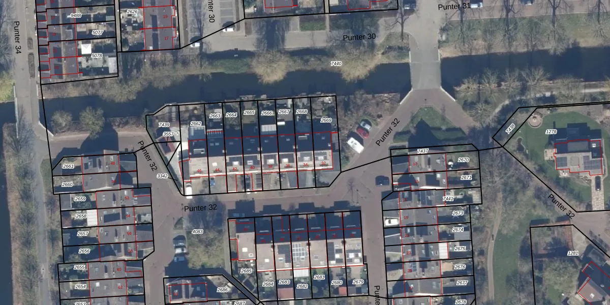Het perceel waarop Punter 32 34 staat heeft een oppervlakte van 172 m². Dit is een middelgroot perceel. De perceeloppervlakte wordt geregistreerd door het Kadaster. Gedetailleerde informatie over de maten van dit perceel kunt u vinden in het rapport Kadastrale kaart met maatvoering van Punter 32 34.