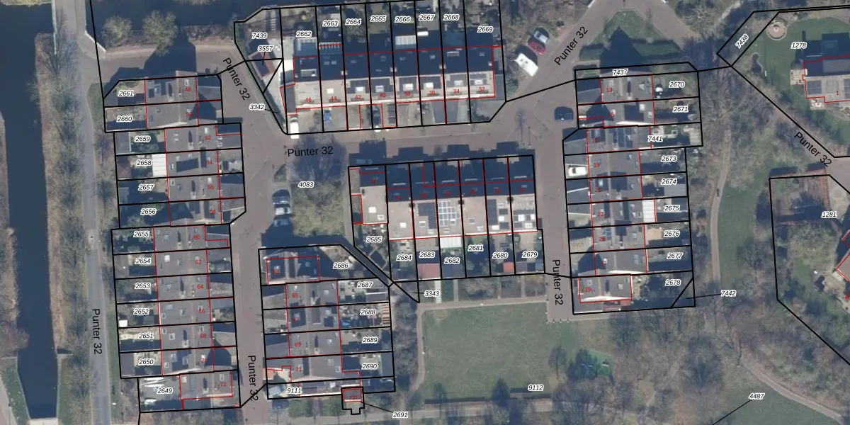 Het perceel waarop Punter 32 39 staat heeft een oppervlakte van 160 m². Dit is een middelgroot perceel. De perceeloppervlakte wordt geregistreerd door het Kadaster. Gedetailleerde informatie over de maten van dit perceel kunt u vinden in het rapport Kadastrale kaart met maatvoering van Punter 32 39.