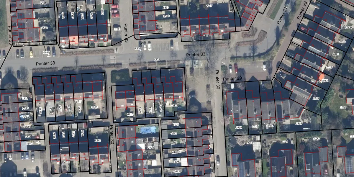 Het perceel waarop Punter 33 11 staat heeft een oppervlakte van 332 m². Dit is een groot perceel. De perceeloppervlakte wordt geregistreerd door het Kadaster. Gedetailleerde informatie over de maten van dit perceel kunt u vinden in het rapport Kadastrale kaart met maatvoering van Punter 33 11.
