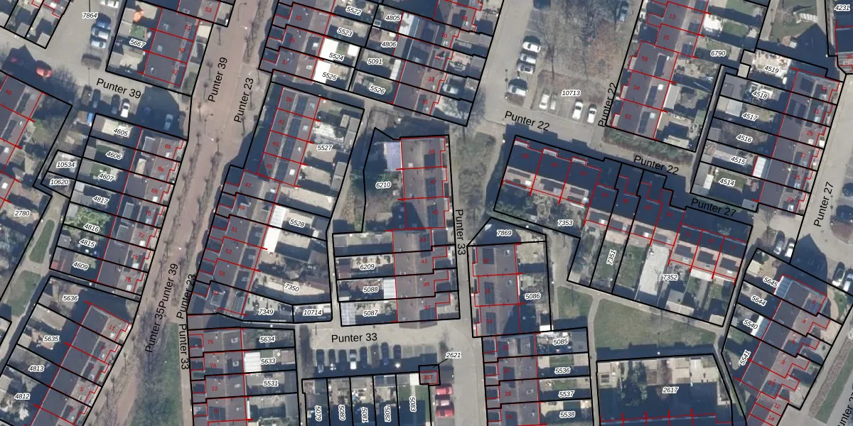 Het perceel waarop Punter 33 45 staat heeft een oppervlakte van 586 m². Dit is een groot perceel. De perceeloppervlakte wordt geregistreerd door het Kadaster. Gedetailleerde informatie over de maten van dit perceel kunt u vinden in het rapport Kadastrale kaart met maatvoering van Punter 33 45.