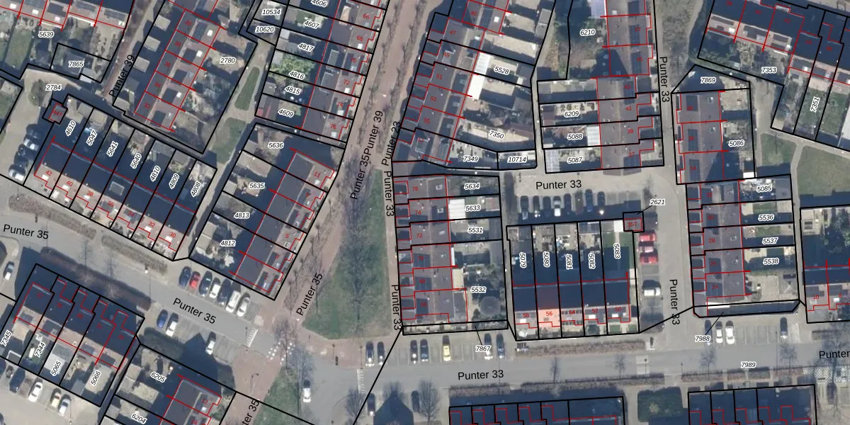Gebruik de zoekbalk of klik op een perceel voor informatie over de adressen binnen dit perceel.