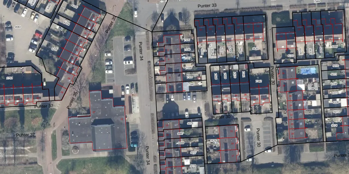 Het perceel waarop Punter 34 11 staat heeft een oppervlakte van 181 m². Dit is een middelgroot perceel. De perceeloppervlakte wordt geregistreerd door het Kadaster. Gedetailleerde informatie over de maten van dit perceel kunt u vinden in het rapport Kadastrale kaart met maatvoering van Punter 34 11.