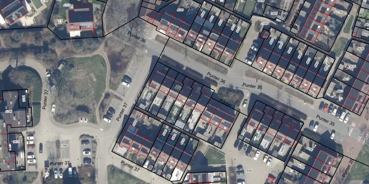Gebruik de zoekbalk of klik op een perceel voor informatie over de adressen binnen dit perceel.