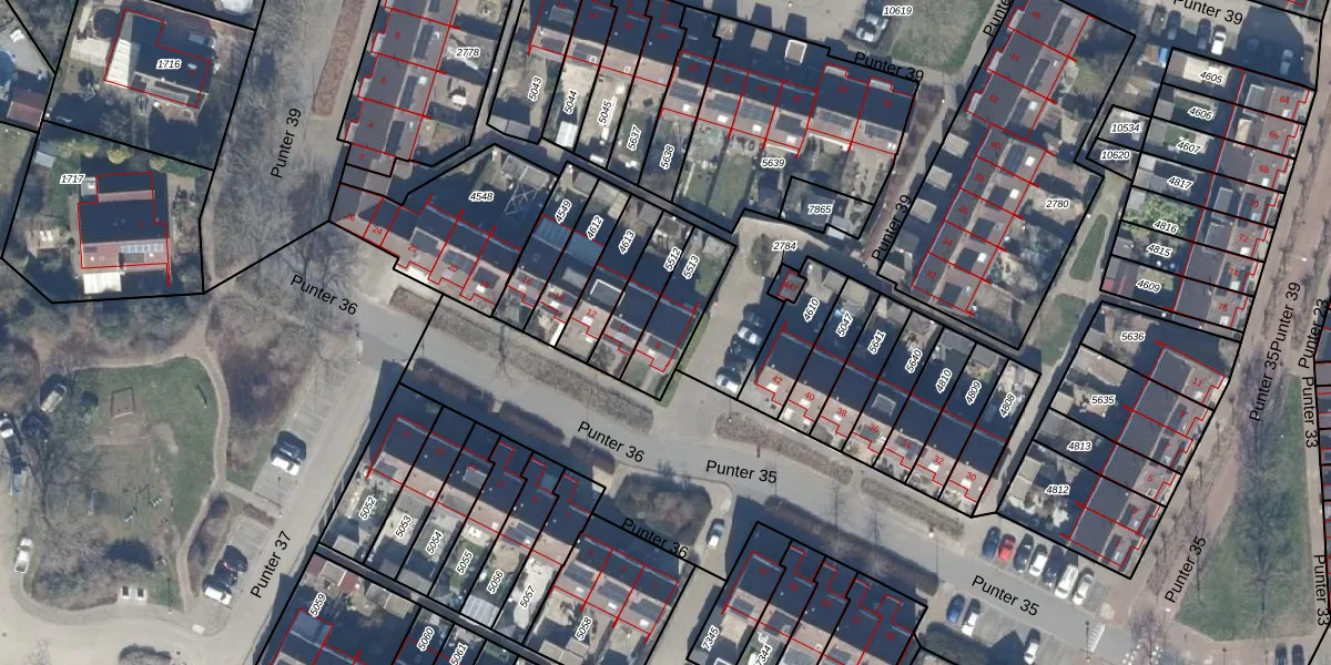 Gebruik de zoekbalk of klik op een perceel voor informatie over de adressen binnen dit perceel.