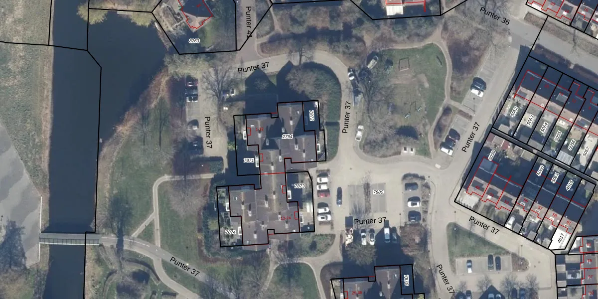 Het perceel waarop Punter 37 11 staat heeft een oppervlakte van 777 m². Dit is een groot perceel. De perceeloppervlakte wordt geregistreerd door het Kadaster. Gedetailleerde informatie over de maten van dit perceel kunt u vinden in het rapport Kadastrale kaart met maatvoering van Punter 37 11.