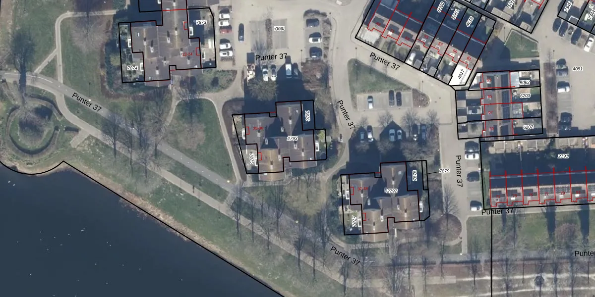 Het perceel waarop Punter 37 32 staat heeft een oppervlakte van 388 m². Dit is een groot perceel. De perceeloppervlakte wordt geregistreerd door het Kadaster. Gedetailleerde informatie over de maten van dit perceel kunt u vinden in het rapport Kadastrale kaart met maatvoering van Punter 37 32.