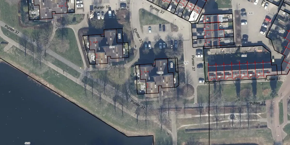 Punter 37 42 is gelegen op kadastraal perceel LLS00M2792. Deze kadastrale aanduiding is uniek en wordt gebruikt door het Kadaster om eigendomsrechten en andere zakelijke rechten vast te leggen. Het perceel maakt onderdeel uit van de kadastrale gemeente Lelystad.
