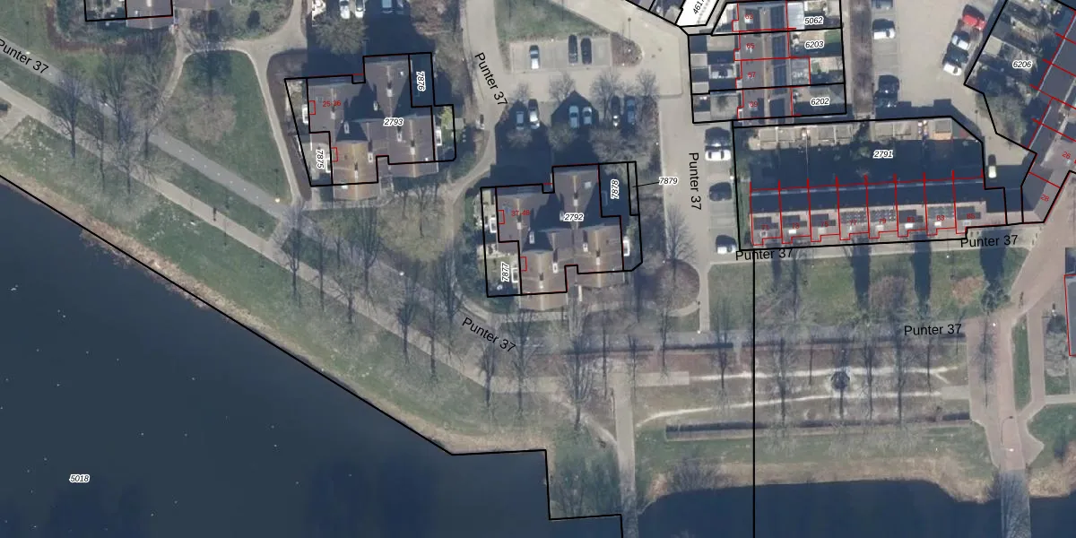 Punter 37 48 is gelegen op kadastraal perceel LLS00M2792. Deze kadastrale aanduiding is uniek en wordt gebruikt door het Kadaster om eigendomsrechten en andere zakelijke rechten vast te leggen. Het perceel maakt onderdeel uit van de kadastrale gemeente Lelystad.