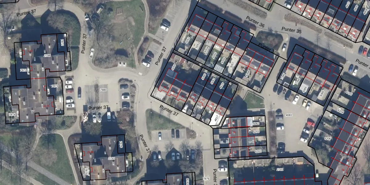 Het perceel waarop Punter 37 53 staat heeft een oppervlakte van 485 m². Dit is een groot perceel. De perceeloppervlakte wordt geregistreerd door het Kadaster. Gedetailleerde informatie over de maten van dit perceel kunt u vinden in het rapport Kadastrale kaart met maatvoering van Punter 37 53.