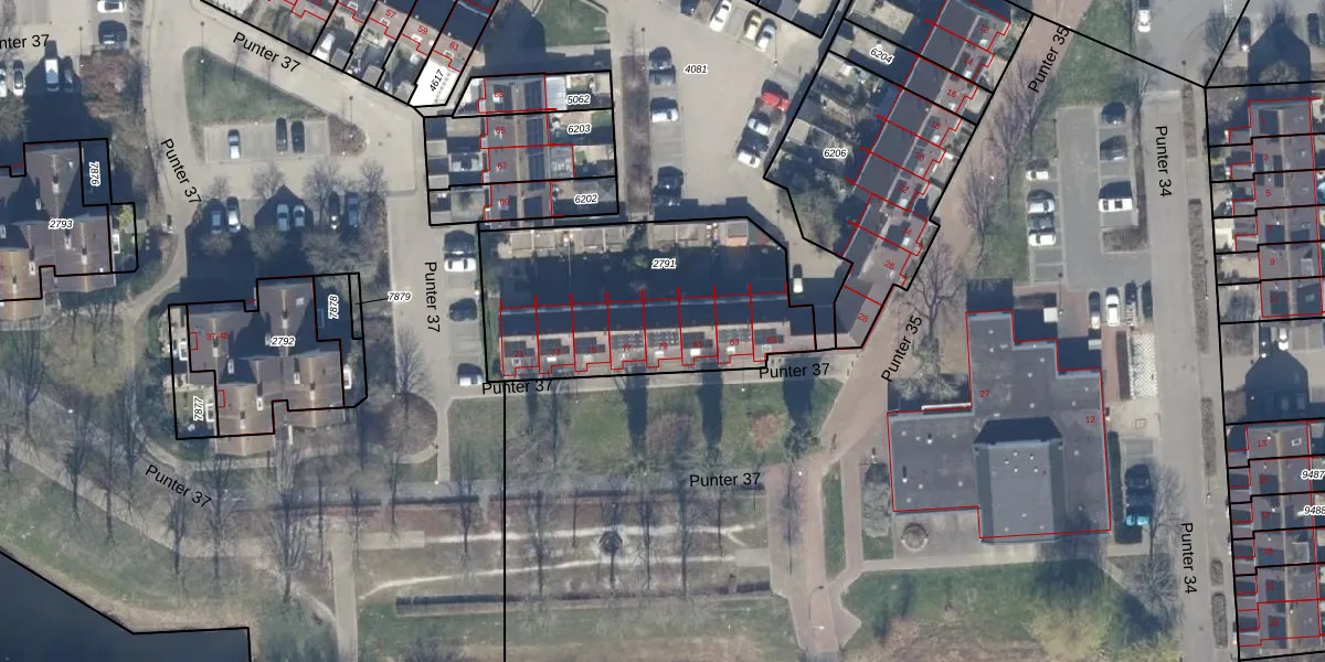 Punter 37 79 is gelegen op kadastraal perceel LLS00M2791. Deze kadastrale aanduiding is uniek en wordt gebruikt door het Kadaster om eigendomsrechten en andere zakelijke rechten vast te leggen. Het perceel maakt onderdeel uit van de kadastrale gemeente Lelystad.