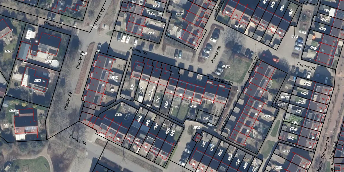 Het perceel waarop Punter 39 20 staat heeft een oppervlakte van 157 m². Dit is een middelgroot perceel. De perceeloppervlakte wordt geregistreerd door het Kadaster. Gedetailleerde informatie over de maten van dit perceel kunt u vinden in het rapport Kadastrale kaart met maatvoering van Punter 39 20.
