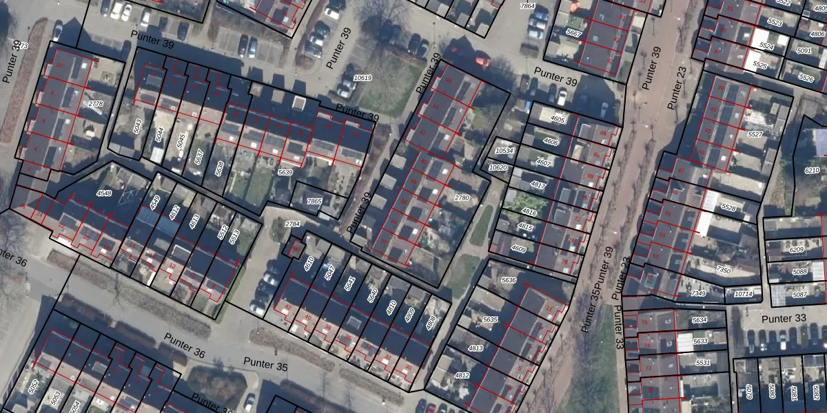 Punter 39 36 is gelegen op kadastraal perceel LLS00M2780. Deze kadastrale aanduiding is uniek en wordt gebruikt door het Kadaster om eigendomsrechten en andere zakelijke rechten vast te leggen. Het perceel maakt onderdeel uit van de kadastrale gemeente Lelystad.