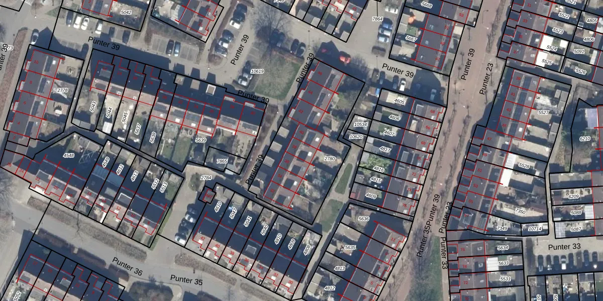 Het perceel waarop Punter 39 38 staat heeft een oppervlakte van 1086 m². Dit is een zeer groot perceel. De perceeloppervlakte wordt geregistreerd door het Kadaster. Gedetailleerde informatie over de maten van dit perceel kunt u vinden in het rapport Kadastrale kaart met maatvoering van Punter 39 38.