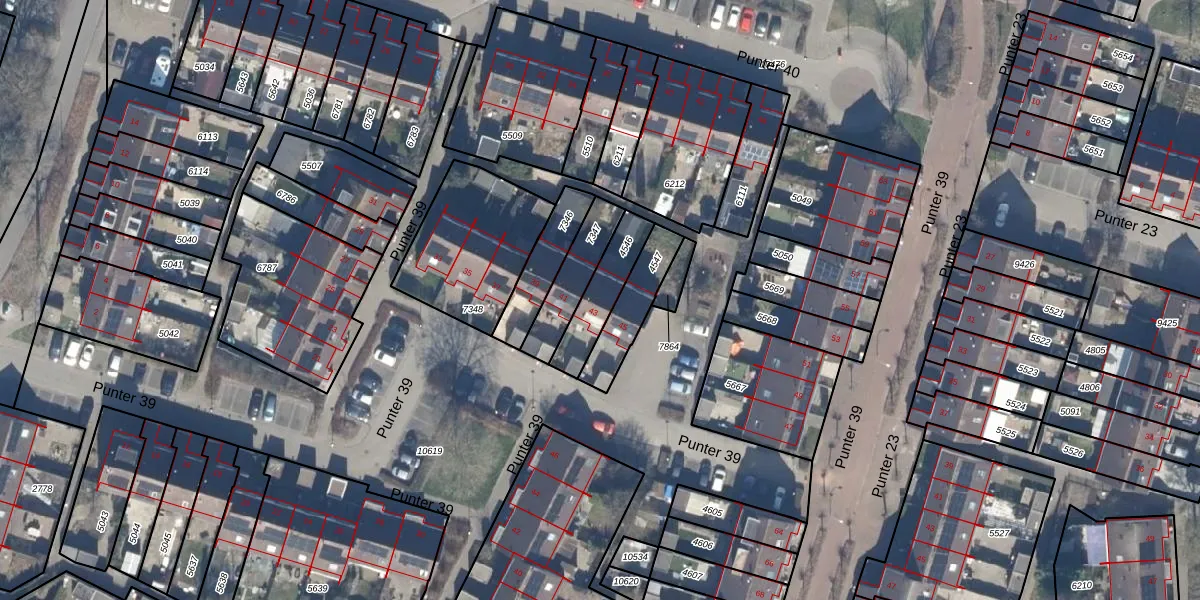 Het perceel waarop Punter 39 43 staat heeft een oppervlakte van 157 m². Dit is een middelgroot perceel. De perceeloppervlakte wordt geregistreerd door het Kadaster. Gedetailleerde informatie over de maten van dit perceel kunt u vinden in het rapport Kadastrale kaart met maatvoering van Punter 39 43.