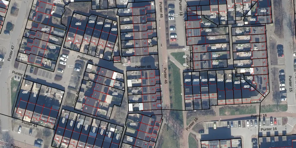 Punter 46 24 is gelegen op kadastraal perceel LLS00M9896. Deze kadastrale aanduiding is uniek en wordt gebruikt door het Kadaster om eigendomsrechten en andere zakelijke rechten vast te leggen. Het perceel maakt onderdeel uit van de kadastrale gemeente Lelystad.