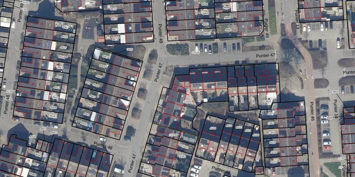 Het perceel waarop Punter 47 18 staat heeft een oppervlakte van 973 m². Dit is een groot perceel. De perceeloppervlakte wordt geregistreerd door het Kadaster. Gedetailleerde informatie over de maten van dit perceel kunt u vinden in het rapport Kadastrale kaart met maatvoering van Punter 47 18.