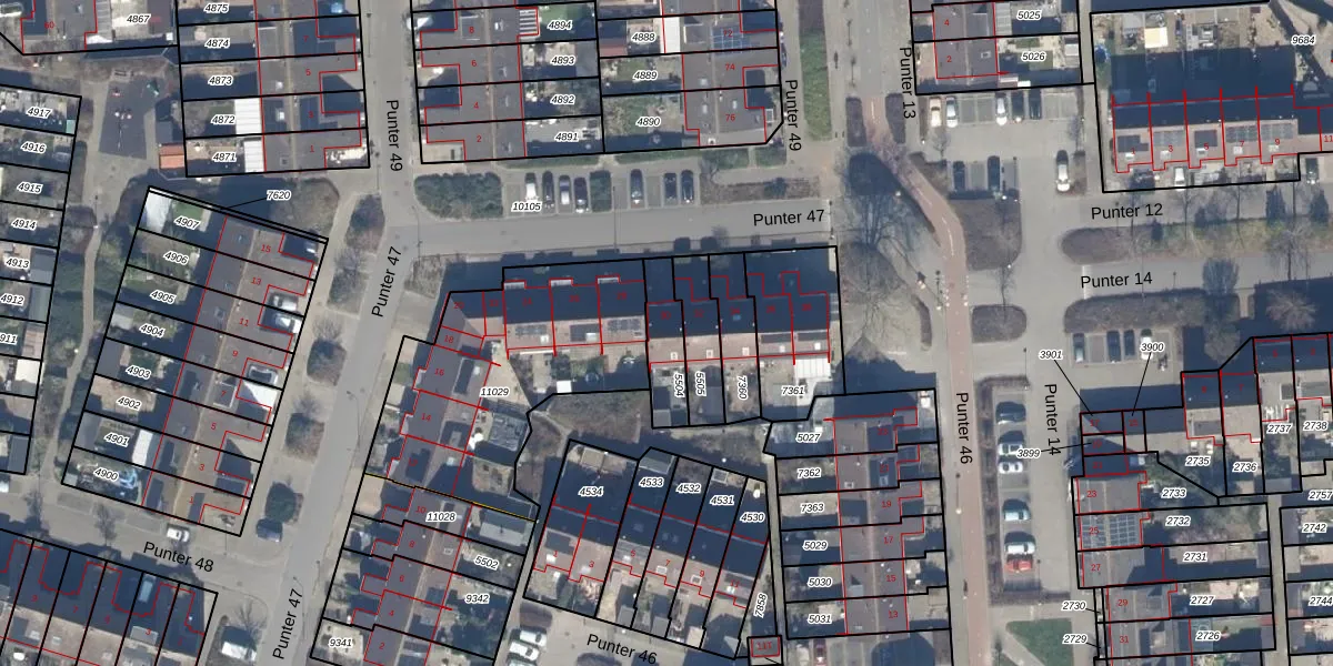 Gebruik de zoekbalk of klik op een perceel voor informatie over de adressen binnen dit perceel.