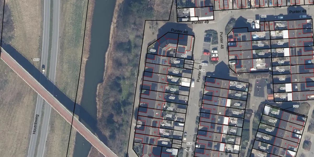 Gebruik de zoekbalk of klik op een perceel voor informatie over de adressen binnen dit perceel.