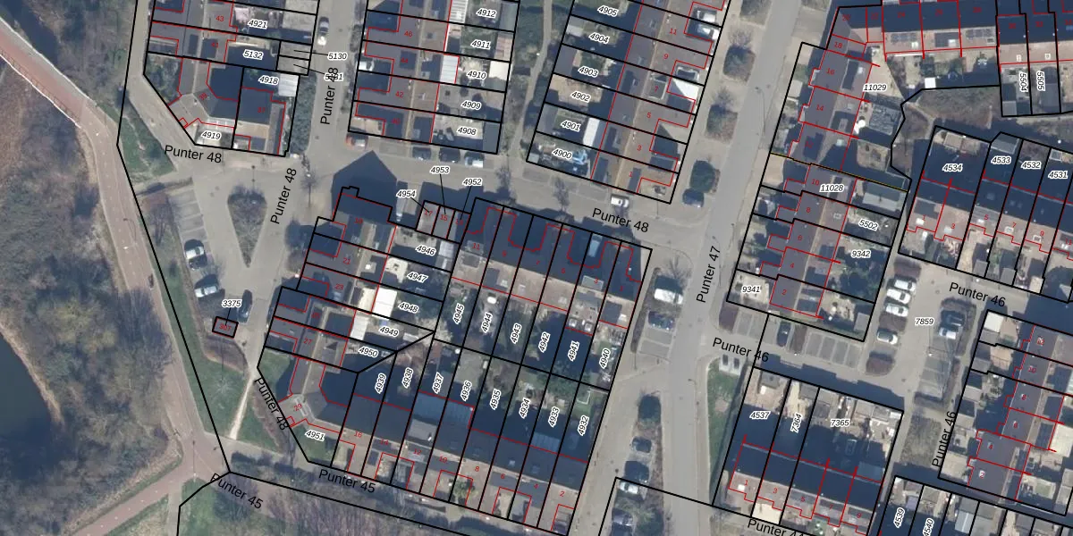 Punter 48 7 is gelegen op kadastraal perceel LLS00M4943. Deze kadastrale aanduiding is uniek en wordt gebruikt door het Kadaster om eigendomsrechten en andere zakelijke rechten vast te leggen. Het perceel maakt onderdeel uit van de kadastrale gemeente Lelystad.