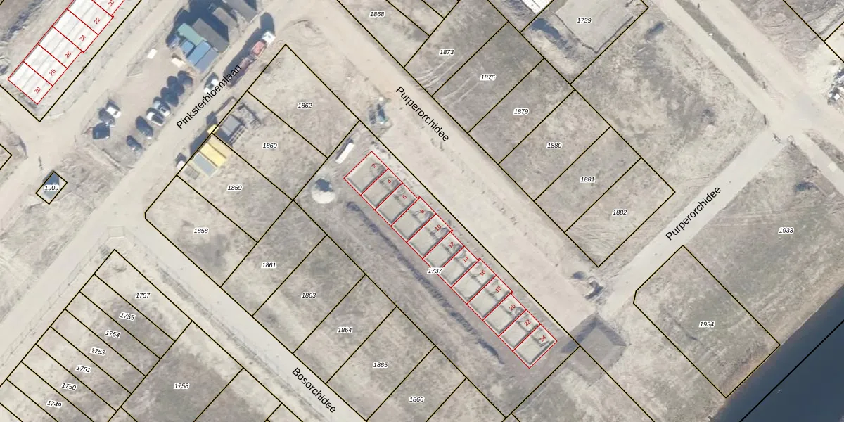 Het perceel waarop Purperorchidee 8 staat heeft een oppervlakte van 1801 m². Dit is een zeer groot perceel. De perceeloppervlakte wordt geregistreerd door het Kadaster. Gedetailleerde informatie over de maten van dit perceel kunt u vinden in het rapport Kadastrale kaart met maatvoering van Purperorchidee 8.