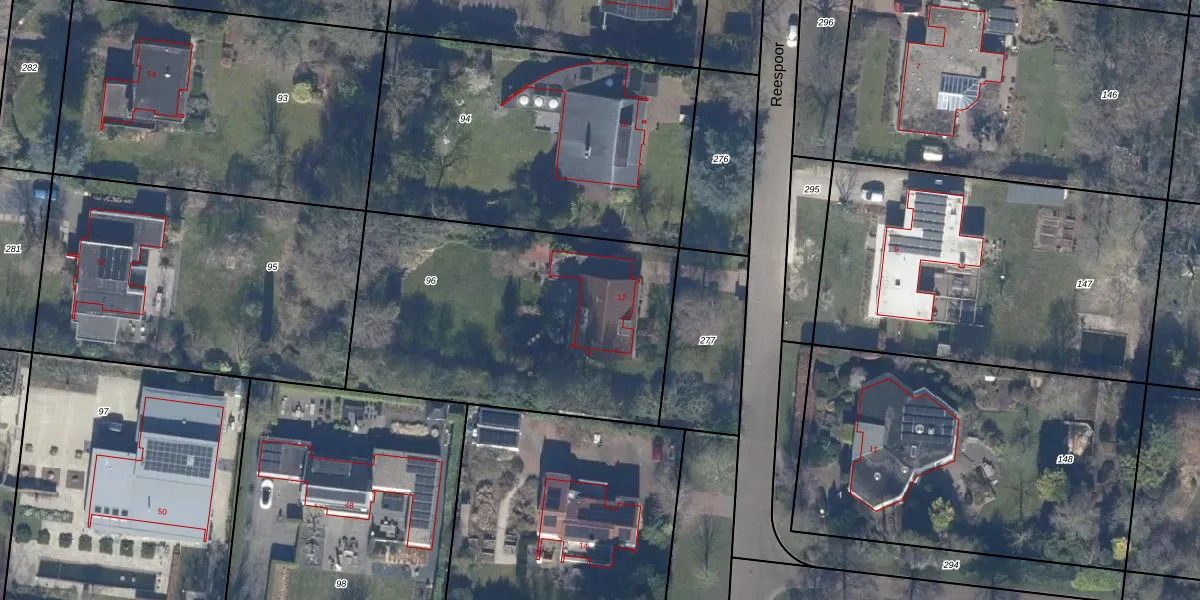 Het perceel waarop Reespoor 12 staat heeft een oppervlakte van 1577 m². Dit is een zeer groot perceel. De perceeloppervlakte wordt geregistreerd door het Kadaster. Gedetailleerde informatie over de maten van dit perceel kunt u vinden in het rapport Kadastrale kaart met maatvoering van Reespoor 12.