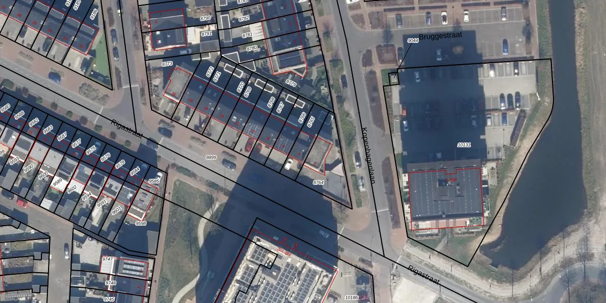 Gebruik de zoekbalk of klik op een perceel voor informatie over de adressen binnen dit perceel.