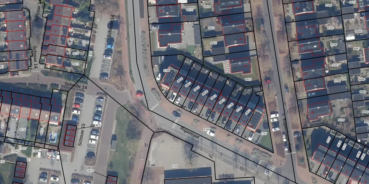 Gebruik de zoekbalk of klik op een perceel voor informatie over de adressen binnen dit perceel.