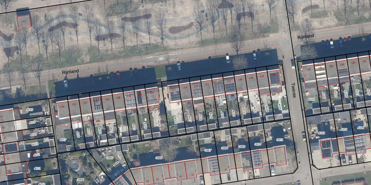 Gebruik de zoekbalk of klik op een perceel voor informatie over de adressen binnen dit perceel.