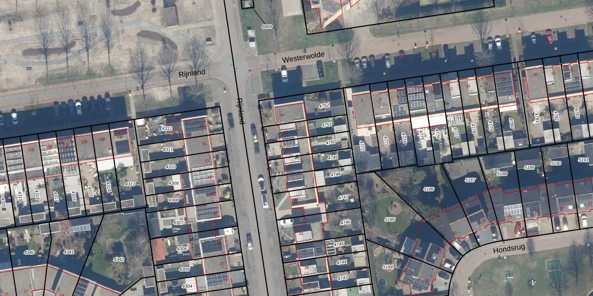 Het perceel waarop Rijnland 50 staat heeft een oppervlakte van 164 m². Dit is een middelgroot perceel. De perceeloppervlakte wordt geregistreerd door het Kadaster. Gedetailleerde informatie over de maten van dit perceel kunt u vinden in het rapport Kadastrale kaart met maatvoering van Rijnland 50.