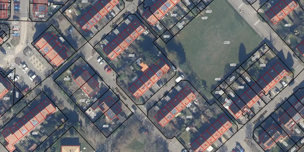 Het perceel waarop Rijnstraat 37 staat heeft een oppervlakte van 1735 m². Dit is een zeer groot perceel. De perceeloppervlakte wordt geregistreerd door het Kadaster. Gedetailleerde informatie over de maten van dit perceel kunt u vinden in het rapport Kadastrale kaart met maatvoering van Rijnstraat 37.