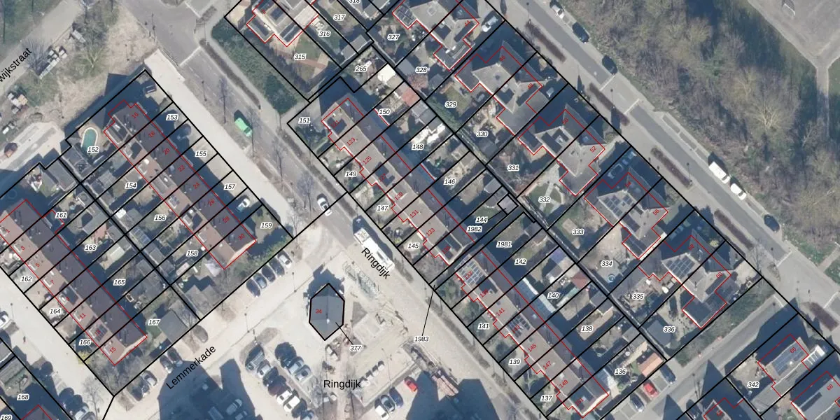 Het perceel waarop Ringdijk 131 staat heeft een oppervlakte van 163 m². Dit is een middelgroot perceel. De perceeloppervlakte wordt geregistreerd door het Kadaster. Gedetailleerde informatie over de maten van dit perceel kunt u vinden in het rapport Kadastrale kaart met maatvoering van Ringdijk 131.