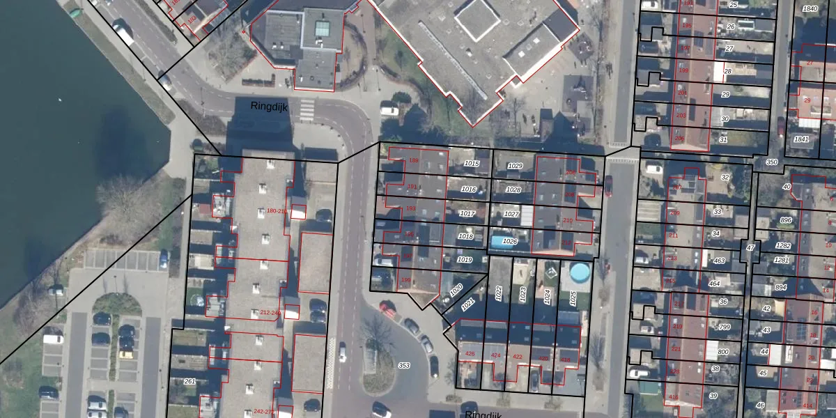 Het perceel waarop Ringdijk 193 staat heeft een oppervlakte van 156 m². Dit is een middelgroot perceel. De perceeloppervlakte wordt geregistreerd door het Kadaster. Gedetailleerde informatie over de maten van dit perceel kunt u vinden in het rapport Kadastrale kaart met maatvoering van Ringdijk 193.
