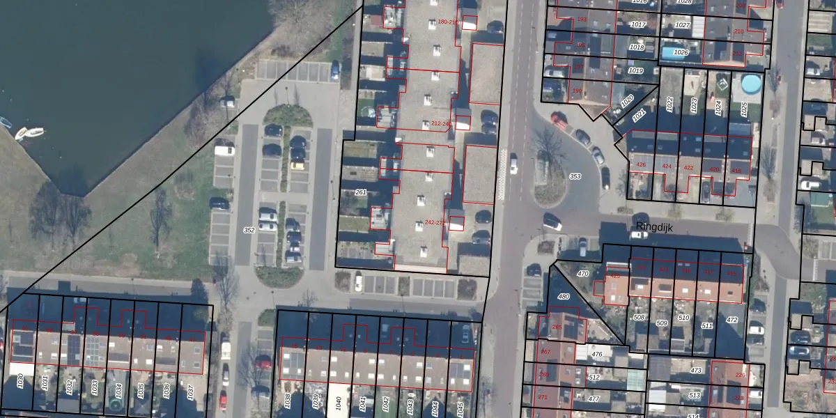 Het perceel waarop Ringdijk 244 staat heeft een oppervlakte van 2578 m². Dit is een zeer groot perceel. De perceeloppervlakte wordt geregistreerd door het Kadaster. Gedetailleerde informatie over de maten van dit perceel kunt u vinden in het rapport Kadastrale kaart met maatvoering van Ringdijk 244.