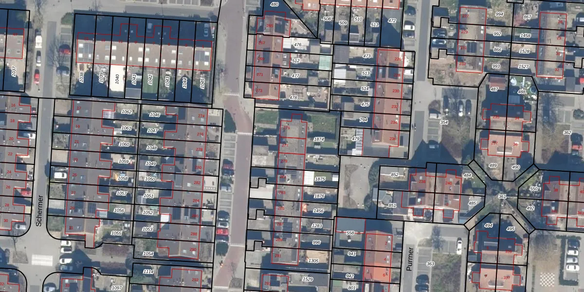 Het perceel waarop het adres ligt is LLS00-S-1874. De afkorting 'LLS00' staat voor kadastrale gemeente Lelystad. Het perceel is kleiner dan gemiddeld in Lelystad. Het perceel is 610 m² groot, terwijl het gemiddelde ligt op 2,1 ha. Het grootste perceel in de kadastrale gemeente is 78,50 km². Het kleinste perceel heeft een oppervlakte van 0 m². Op het perceel zijn 3 adressen aanwezig. De huidige grenzen van het perceel zijn digitaal in de Basisregistratie Kadaster (BRK) geregistreerd op 27-01-2005.
