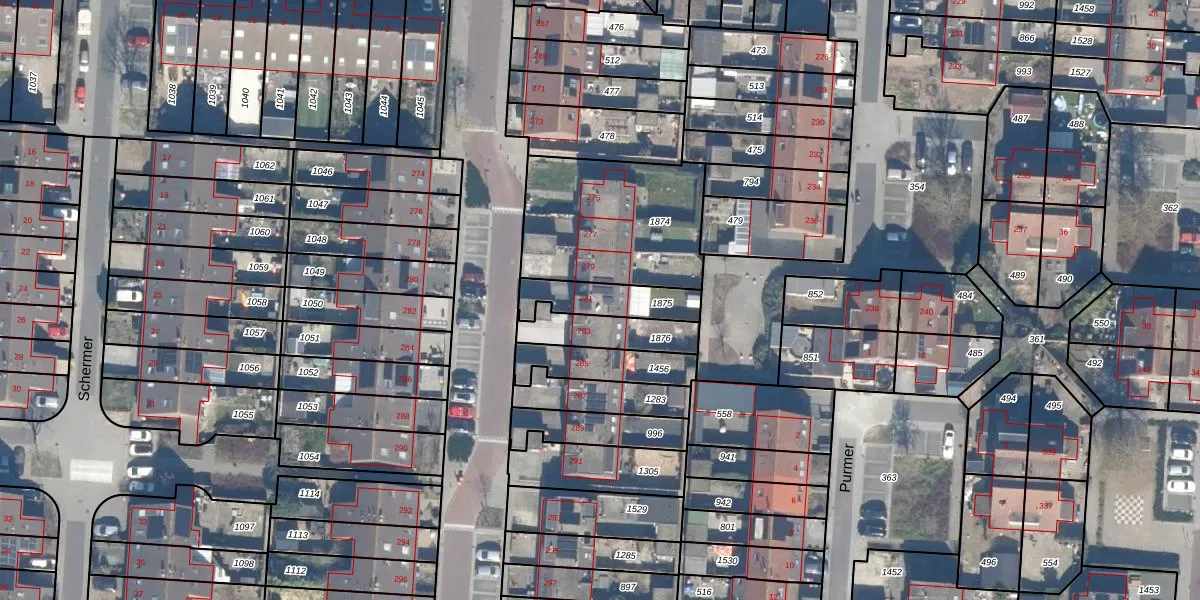 Gebruik de zoekbalk of klik op een perceel voor informatie over de adressen binnen dit perceel.