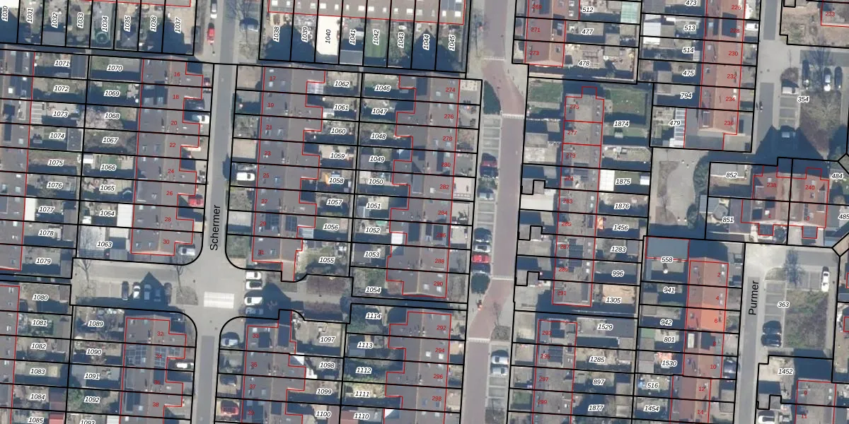 Gebruik de zoekbalk of klik op een perceel voor informatie over de adressen binnen dit perceel.