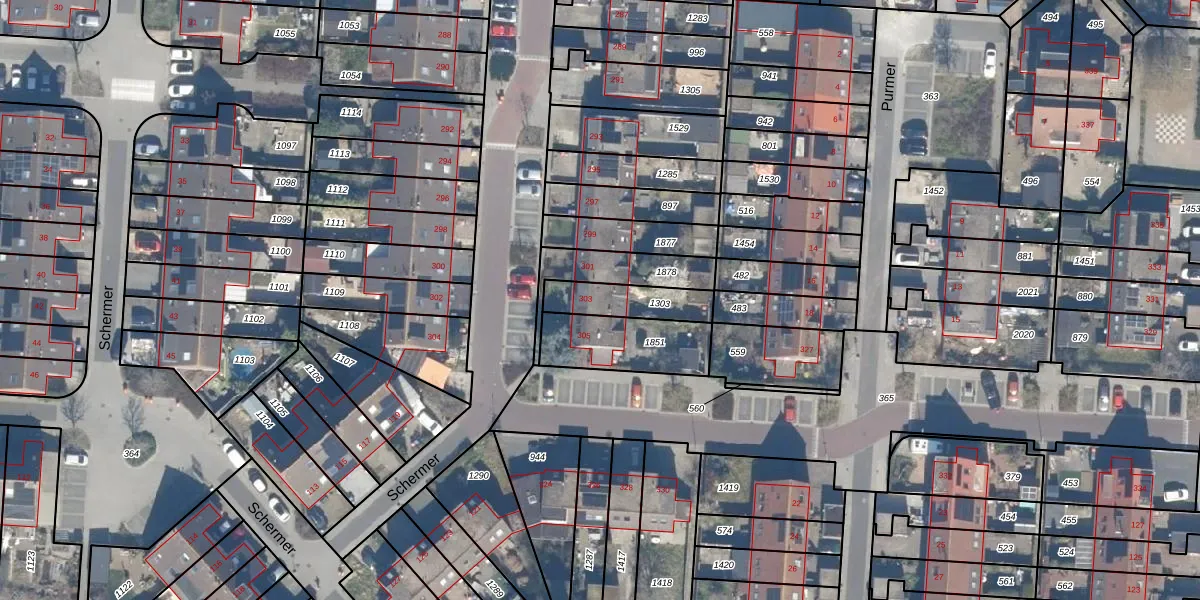 Gebruik de zoekbalk of klik op een perceel voor informatie over de adressen binnen dit perceel.