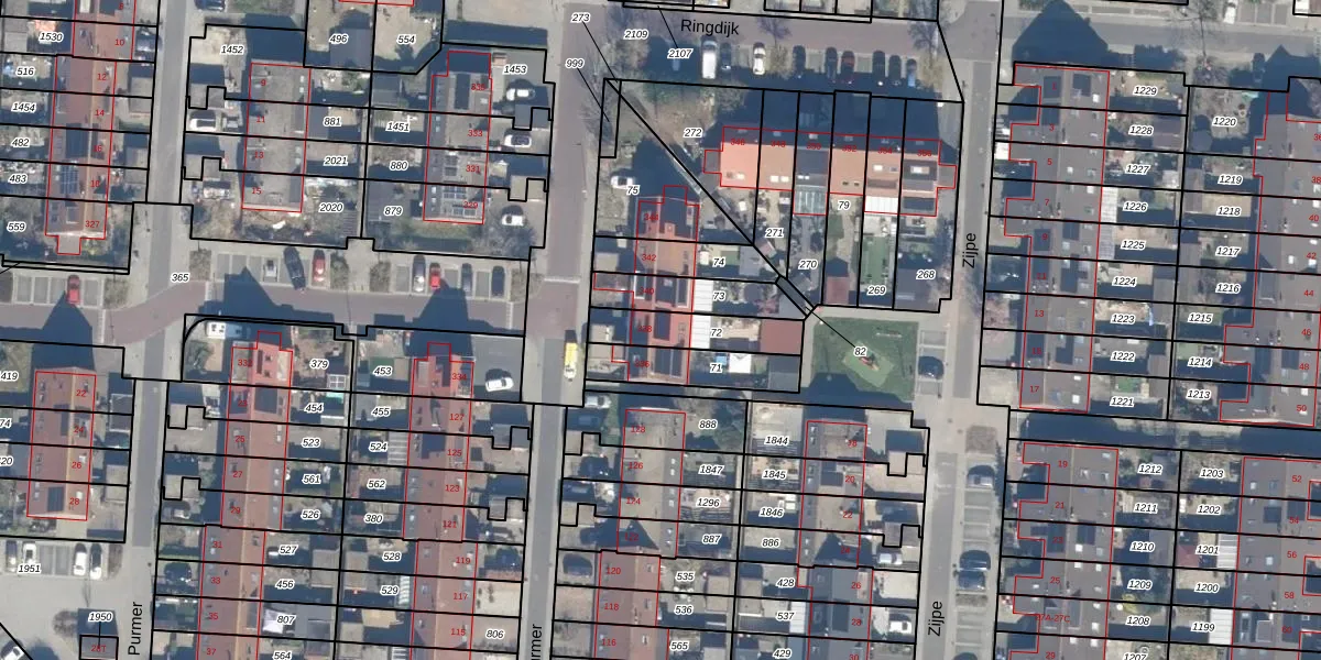 Gebruik de zoekbalk of klik op een perceel voor informatie over de adressen binnen dit perceel.