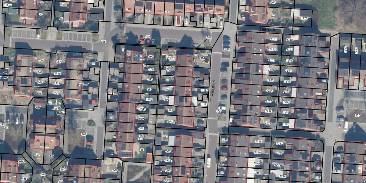 Gebruik de zoekbalk of klik op een perceel voor informatie over de adressen binnen dit perceel.