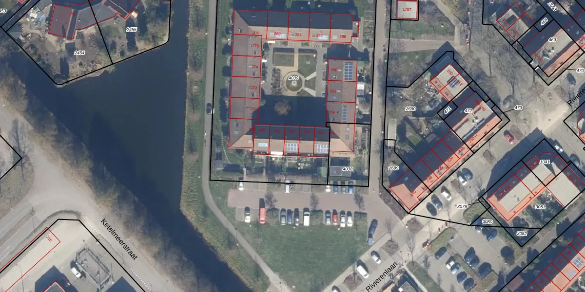 Rivierenlaan 262-A is gelegen op kadastraal perceel LLS00P4039. Deze kadastrale aanduiding is uniek en wordt gebruikt door het Kadaster om eigendomsrechten en andere zakelijke rechten vast te leggen. Het perceel maakt onderdeel uit van de kadastrale gemeente Lelystad.