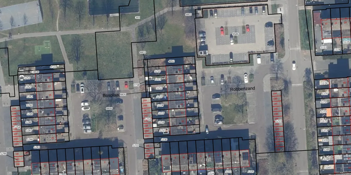 Gebruik de zoekbalk of klik op een perceel voor informatie over de adressen binnen dit perceel.