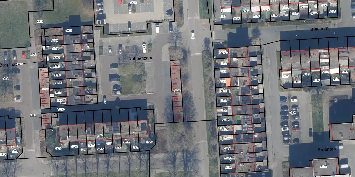 Het perceel waarop Robbenzand 19-F staat heeft een oppervlakte van 196 m². Dit is een middelgroot perceel. De perceeloppervlakte wordt geregistreerd door het Kadaster. Gedetailleerde informatie over de maten van dit perceel kunt u vinden in het rapport Kadastrale kaart met maatvoering van Robbenzand 19-F.