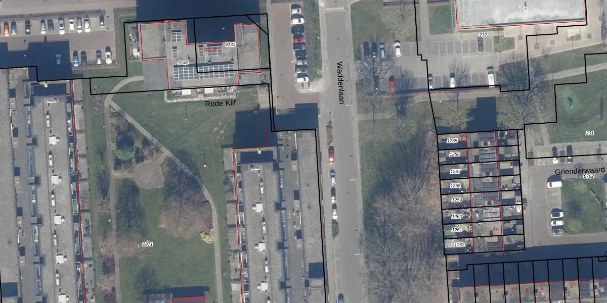 Het perceel waarop Rode Klif 169 staat heeft een oppervlakte van 9173 m². Dit is een zeer groot perceel. De perceeloppervlakte wordt geregistreerd door het Kadaster. Gedetailleerde informatie over de maten van dit perceel kunt u vinden in het rapport Kadastrale kaart met maatvoering van Rode Klif 169.