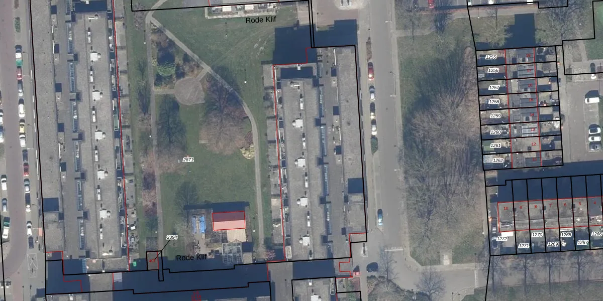 Het perceel waarop Rode Klif 187 staat heeft een oppervlakte van 9173 m². Dit is een zeer groot perceel. De perceeloppervlakte wordt geregistreerd door het Kadaster. Gedetailleerde informatie over de maten van dit perceel kunt u vinden in het rapport Kadastrale kaart met maatvoering van Rode Klif 187.