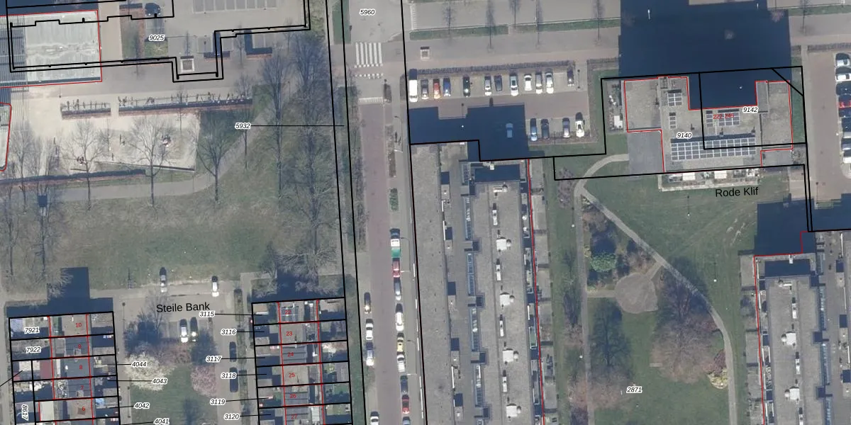 Het perceel waarop Rode Klif 214 staat heeft een oppervlakte van 9173 m². Dit is een zeer groot perceel. De perceeloppervlakte wordt geregistreerd door het Kadaster. Gedetailleerde informatie over de maten van dit perceel kunt u vinden in het rapport Kadastrale kaart met maatvoering van Rode Klif 214.
