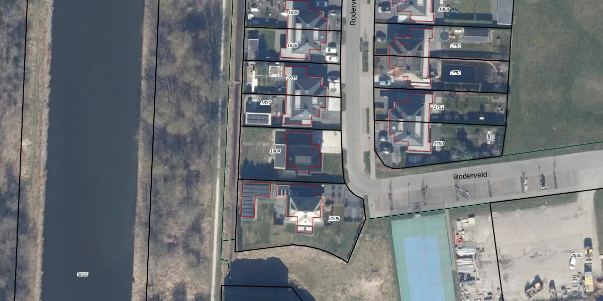 Het perceel waarop Roderveld 3 staat heeft een oppervlakte van 604 m². Dit is een groot perceel. De perceeloppervlakte wordt geregistreerd door het Kadaster. Gedetailleerde informatie over de maten van dit perceel kunt u vinden in het rapport Kadastrale kaart met maatvoering van Roderveld 3.