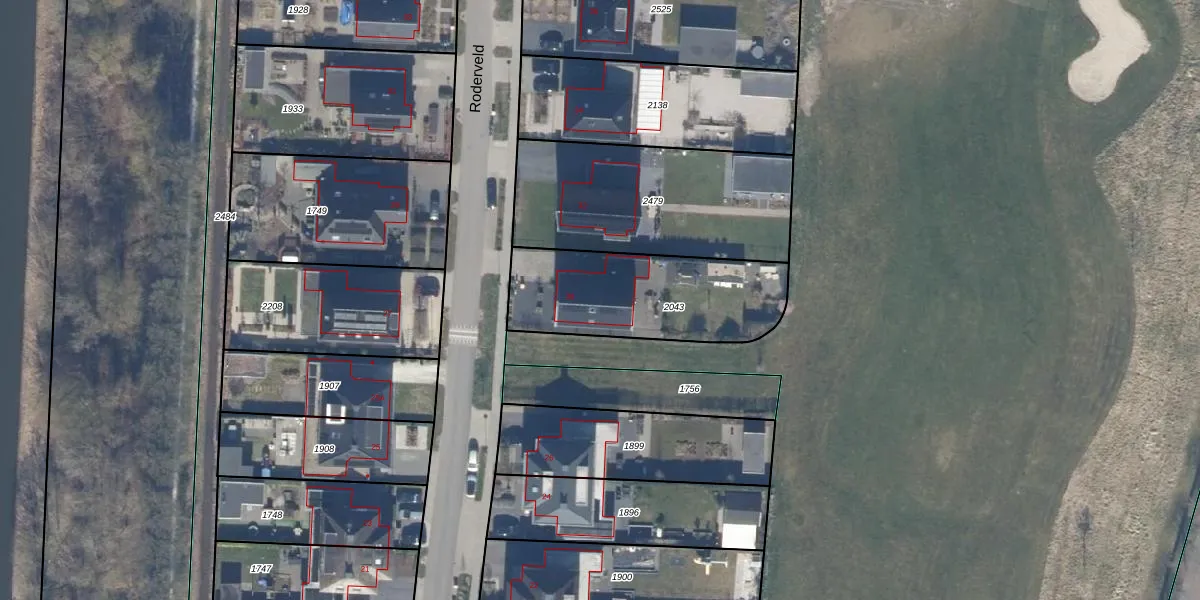 Het perceel waarop Roderveld 30 staat heeft een oppervlakte van 631 m². Dit is een groot perceel. De perceeloppervlakte wordt geregistreerd door het Kadaster. Gedetailleerde informatie over de maten van dit perceel kunt u vinden in het rapport Kadastrale kaart met maatvoering van Roderveld 30.