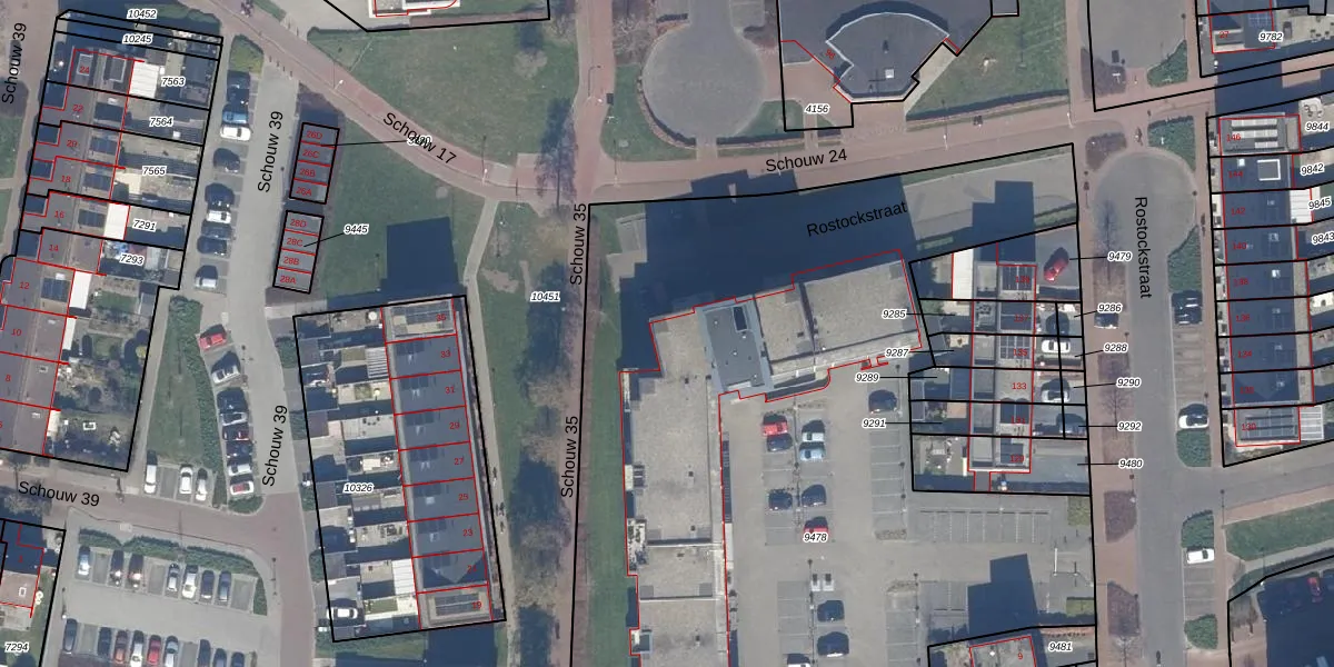 Het perceel waarop Rostockstraat 101 staat heeft een oppervlakte van 7630 m². Dit is een zeer groot perceel. De perceeloppervlakte wordt geregistreerd door het Kadaster. Gedetailleerde informatie over de maten van dit perceel kunt u vinden in het rapport Kadastrale kaart met maatvoering van Rostockstraat 101.